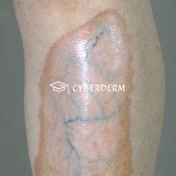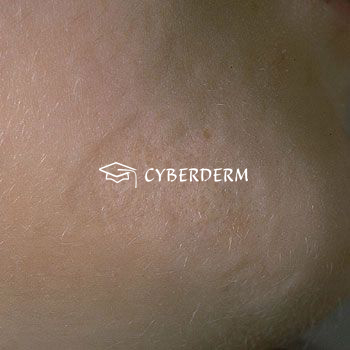 Atrophoderma; rarely congenital atrophy of skin (i.e. aplasia cutis congenitalis).