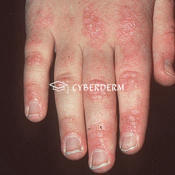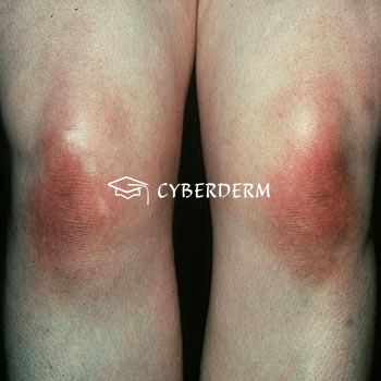 Dorsal aspects of fingers, knees, elbows, malleoli, face.