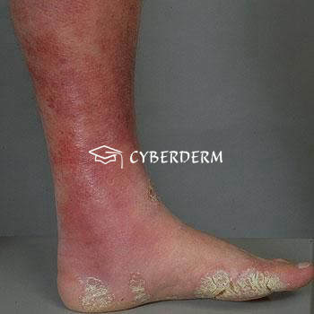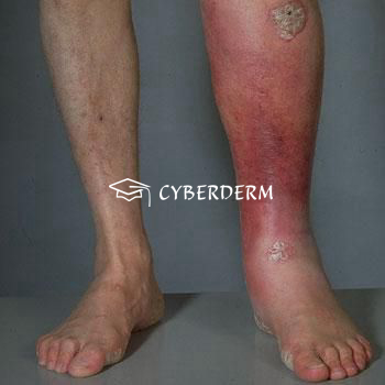 Erysipelas can affect any site, although it has a predilection for the face and legs. Chronic edema of the leg is predisposing. In the face often spreading to the opposite site.