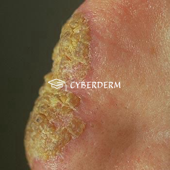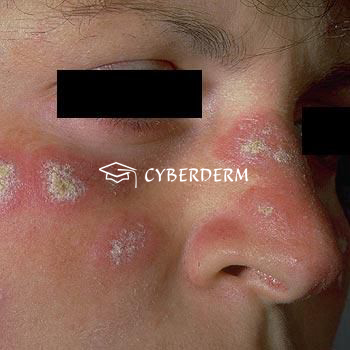 Usually light-exposed areas, especially face, nose, ears, checks (butterfly rash), scalp.