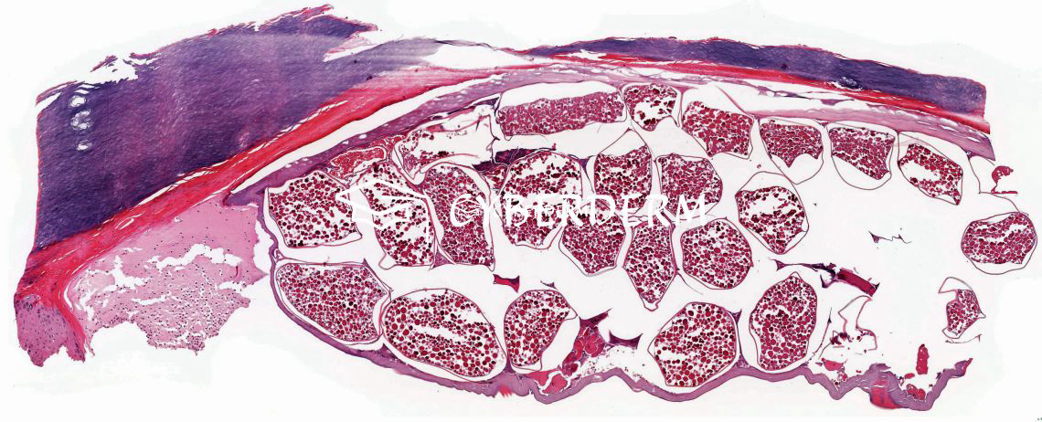 Not needed. Presence of the parasite, eggs or chitinous fragments of the female flea in the dermis, bearing hundreds of eggs within its body. Accompanying polymorphous round cell infiltrate.