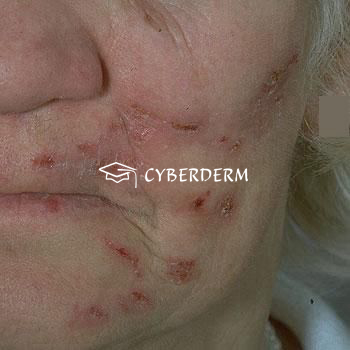 Analogously to Münchhausen syndrome, dermatitis artefacta may rarely occur by proxy i.e. the lesions on the patient may be induced by someone else.
