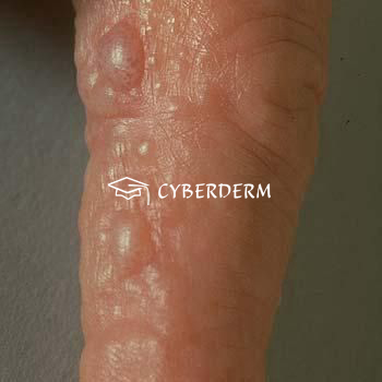 Vesicular to bullous palmoplantar dermatitis.