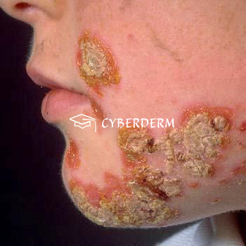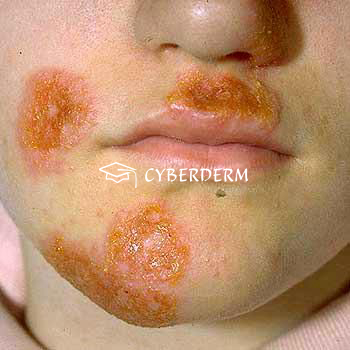 Staphyloccal and streptococcal bacterial infection spread by fomites or direct contact, usually to predisposed skin (sometimes disturbed epidermal barrier; under or over-washing of children`s skin; reduced local immune function in atopic dermatitis, angular stomatitis, rhinitis, herpes simplex, pruritus with scratching). Reservoir: nose. Causative agent usually 80% staphylococci, 10 % ß-hemolytic streptococci and 10% mixed infections.