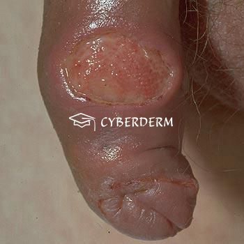 Appear during the first week after transmission. Typically, there are one or more painful ulcers in the genital area. The site of most infections in men is the foreskin and other parts of the penis. In women ulcers may be located on the labia, perineum or intravaginal. Women may demonstrate less specific symptoms such as dysuria, vaginal discharge or rectal bleeding. Some women may have less or no symptoms at all.